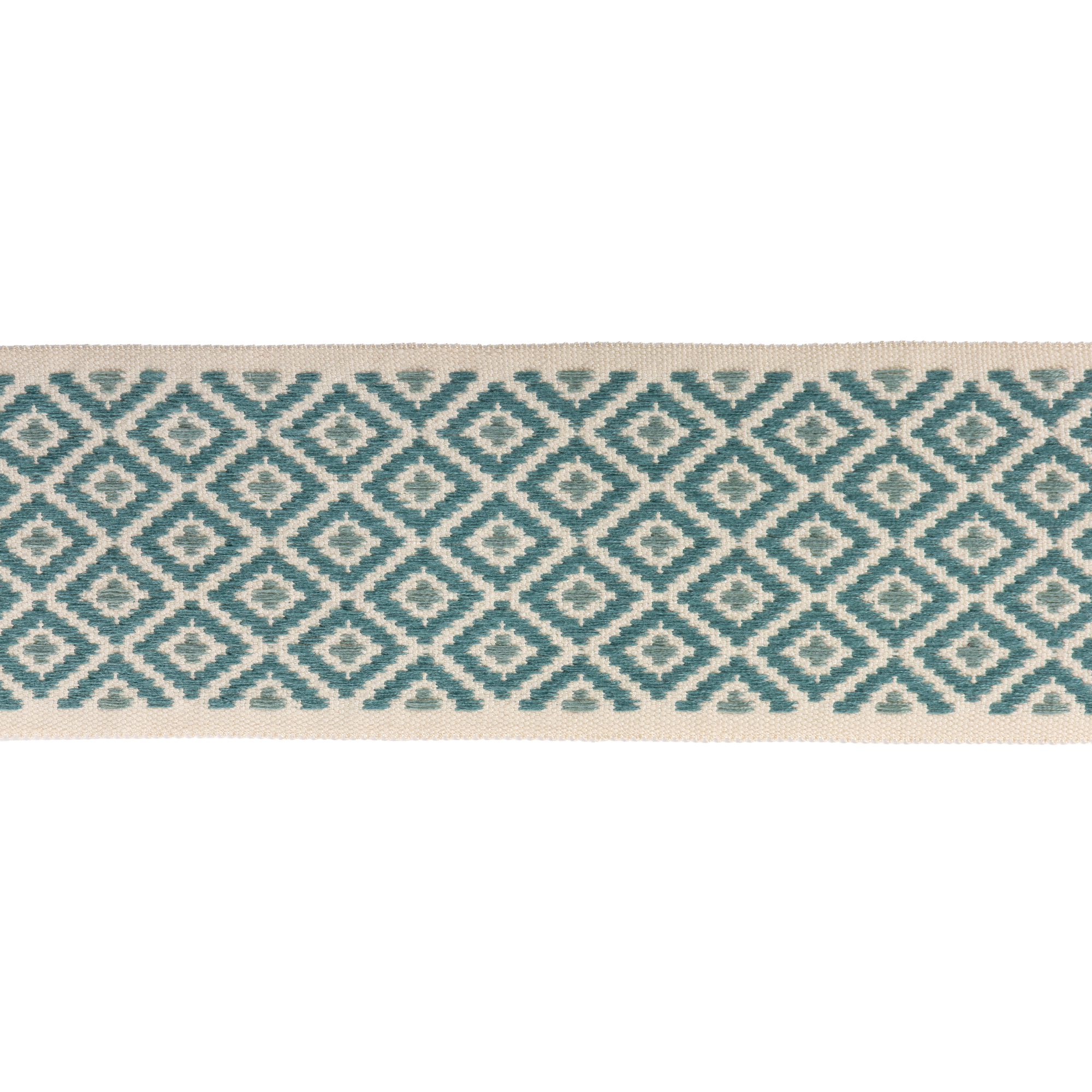 A classic pattern of concentric two-color diamonds is woven on a light ground to create the graphic effect of HENGRAVE TAPE. This easy-to-use linen blend trim is available in a range of sophisticated hues.