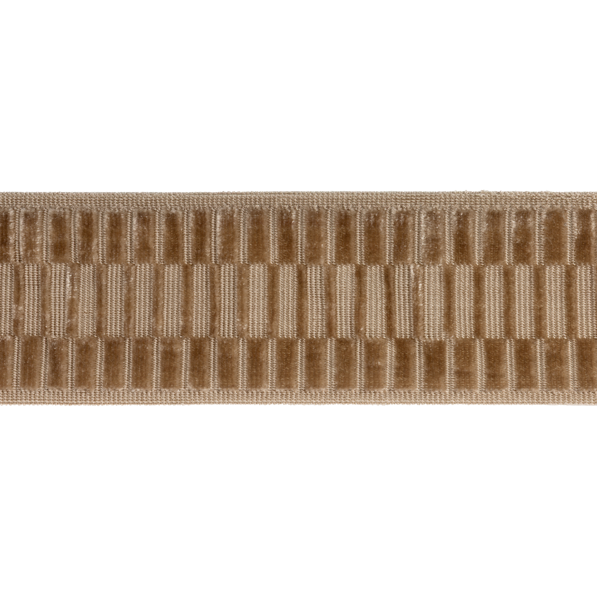A mix of cut and loop pile create the geometry of ELSTON VELVET TAPE. Interestingly, each colorway is woven with just one yarn, but the color reads lighter in the loop and darker in the cut pile. The construction creates the illusion of a two-toned effect. This dynamic tape adds a touch of modernity to any interior.